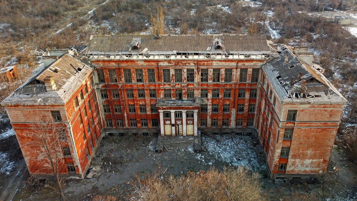 Ще одним “трешовим” місцем для фотосесії є закинута школа поблизу дев’ятої доменної печі на “АрселорМіттал Кривий Ріг”. Її масштаби вражають, а занедбаний стан являється лише окрасою для створення знімків у відповідному стилі.