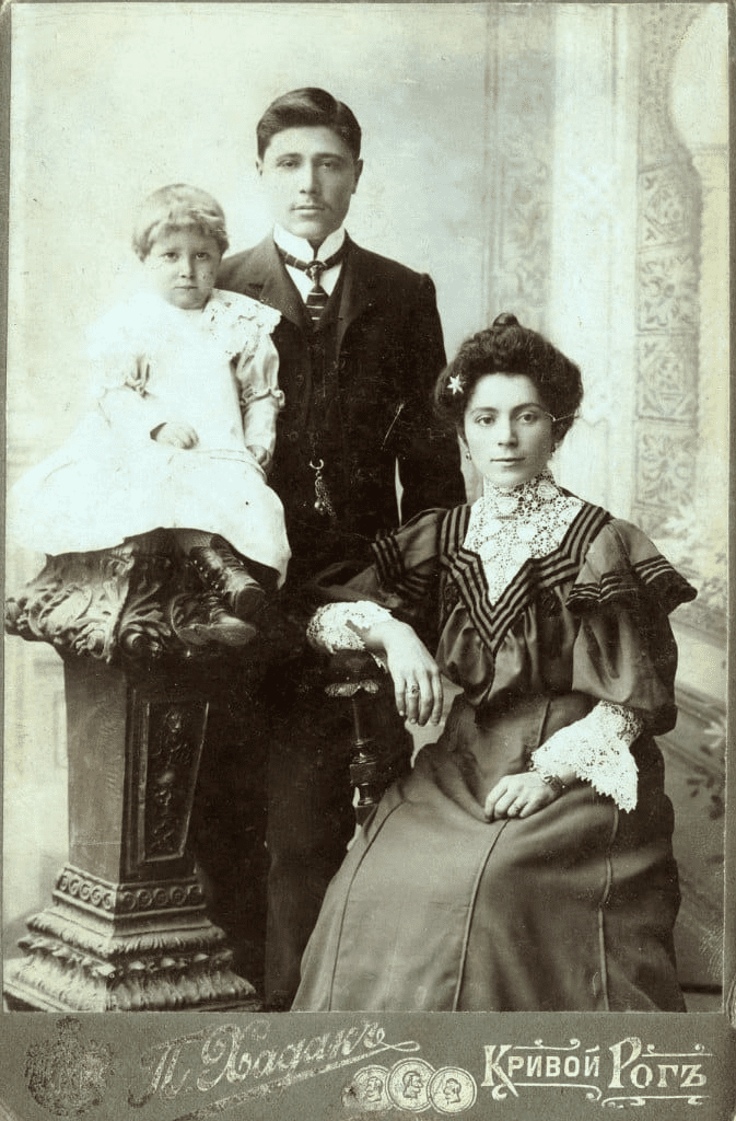 На цьому фото зображено криворізьку сім’ю початку 20 століття. Кожен з них вибрав найкраще своє вбрання та улюблену зачіску. Жінка віддала перевагу скромному вбранню та зачісці: зібраному волоссю, спідниці в підлогу та блузці. Дівчинка обрала сукню та доповнила свій образ косами, які зв’язала стрічкою. Образ хлопчика доповнений кашкетом. А чоловік одягнений у костюм. Фотографію було зроблено в одній з міських фотостудій фотографом Шмулем Подгаєцьким.